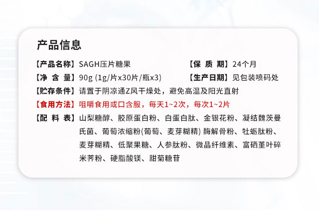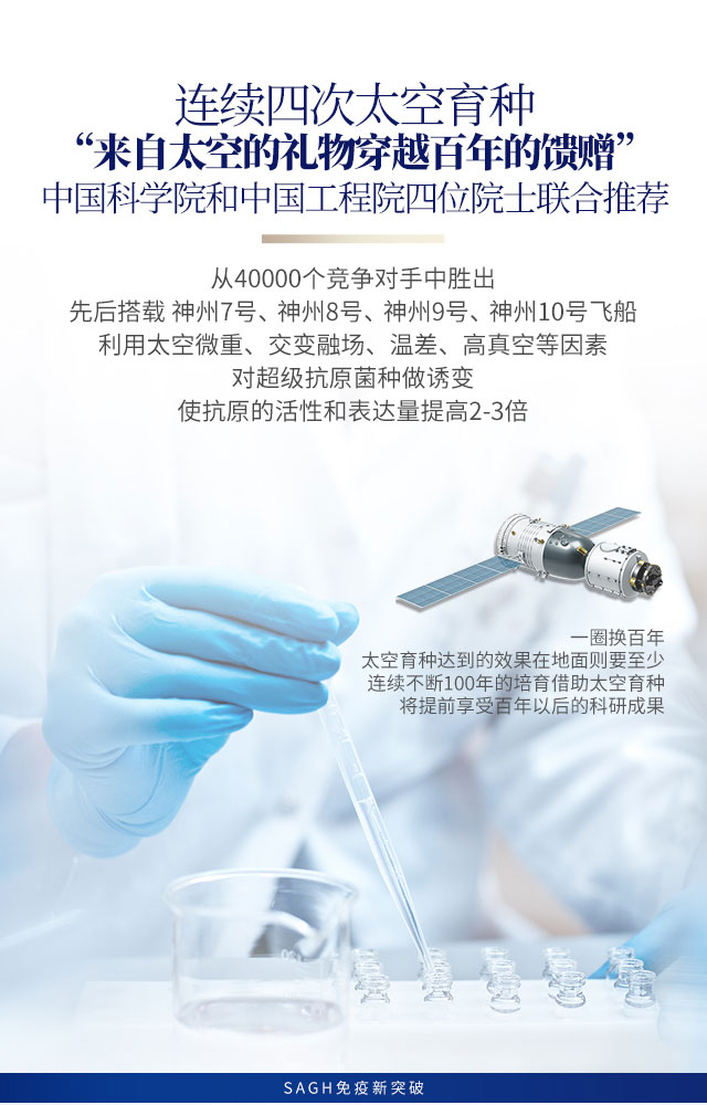 SAGH压片糖果是依托超抗原技术平台之上结合了益生菌技术太空育种技术以及纯植物萃取技术,最大限度的保留了有效成分的生物活性和性状。